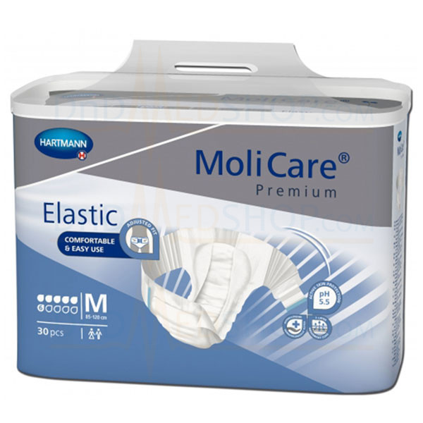 La protection Molicare Elastic 6 gouttes est un change complet en non-tissé de la marque Hartmann qui convient en cas d’incontinence urinaire ou fécale moyenne.